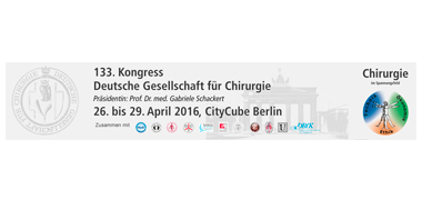 Der 133. Kongresses der Deutschen Gesellschaft für Chirurgie "findet unter dem Motto "Chirurgie im Spannungsfeld von Technik, Ethik und Ökonomie" in Berlin statt. Neben einem vielseitigen und interessanten Vortrags- und Rahmenprogramm möchten wir Sie herzlich zu einem Besuch unseres Standes einladen.